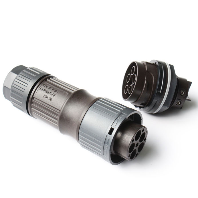 This AC 3-phase connector features a large current-carrying capacity and an excellent resistance to UV light and high temperatures, making it ideal for use in the connection of medium-power string inverters. The housing is made of a high quality, imported PA66. The stability and reliability are guaranteed thanks to the snap-lock coupling system.